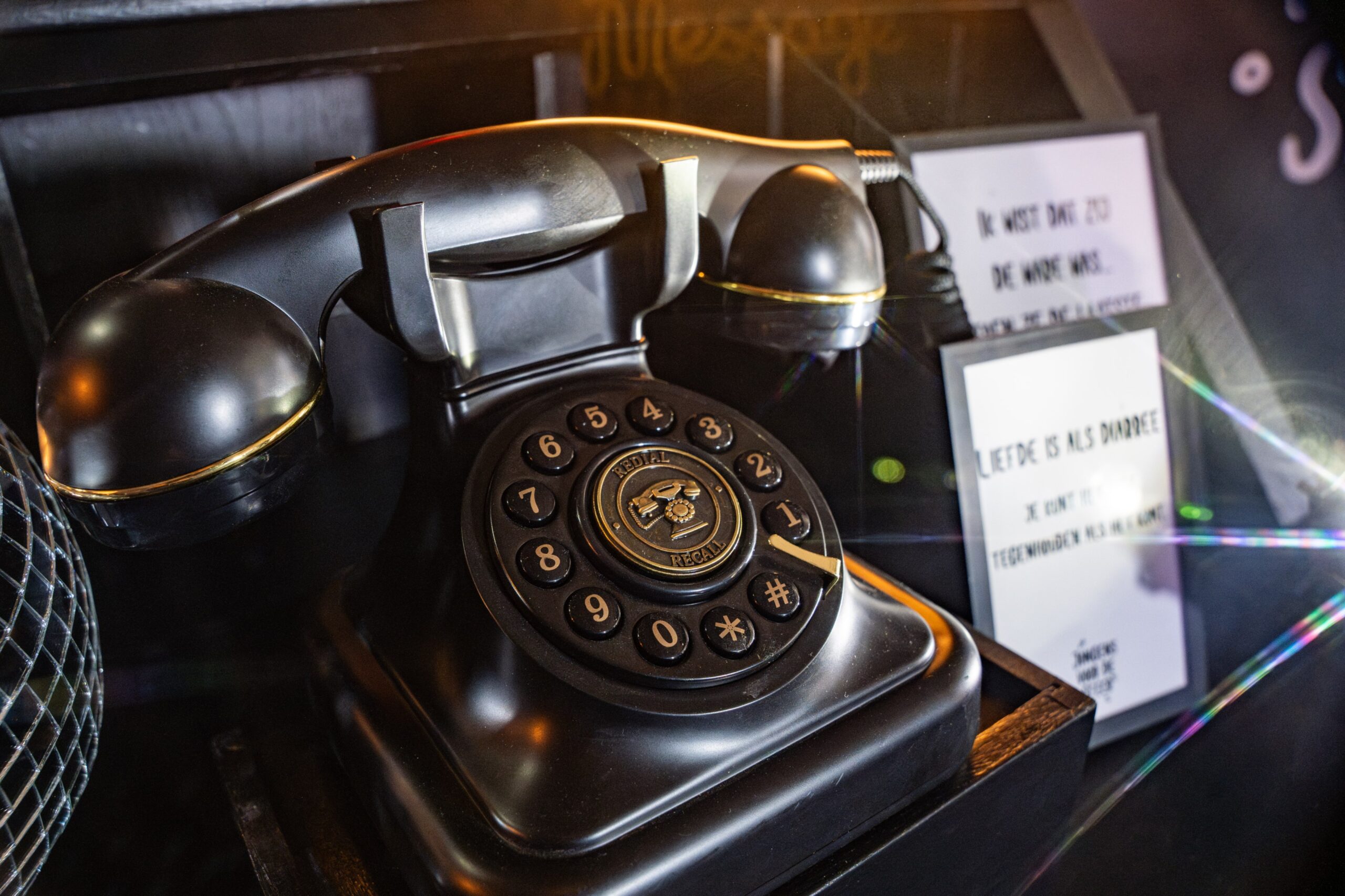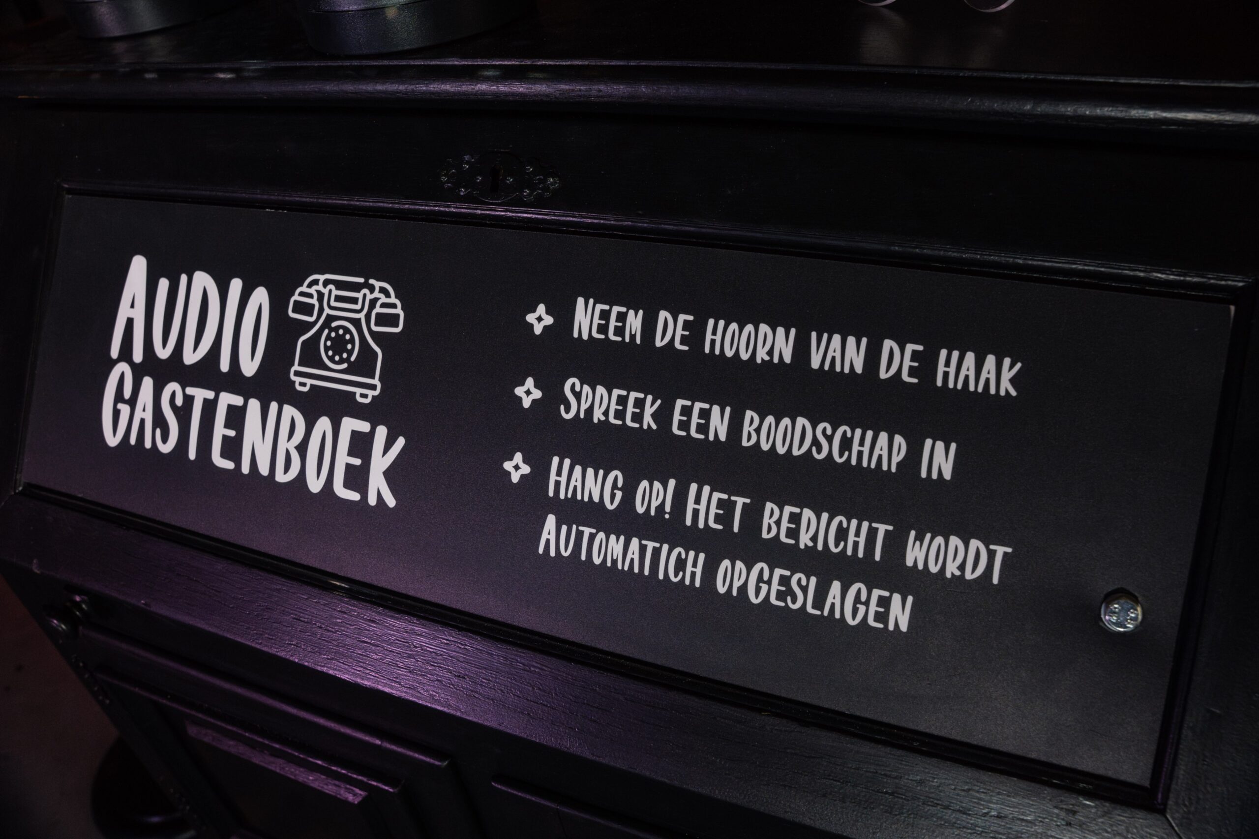 Geen saai boek met pennen die niet werken, maar een ouderwetse telefoon waar je gasten een bericht kunnen inspreken, wie heb jij aan de lijn?