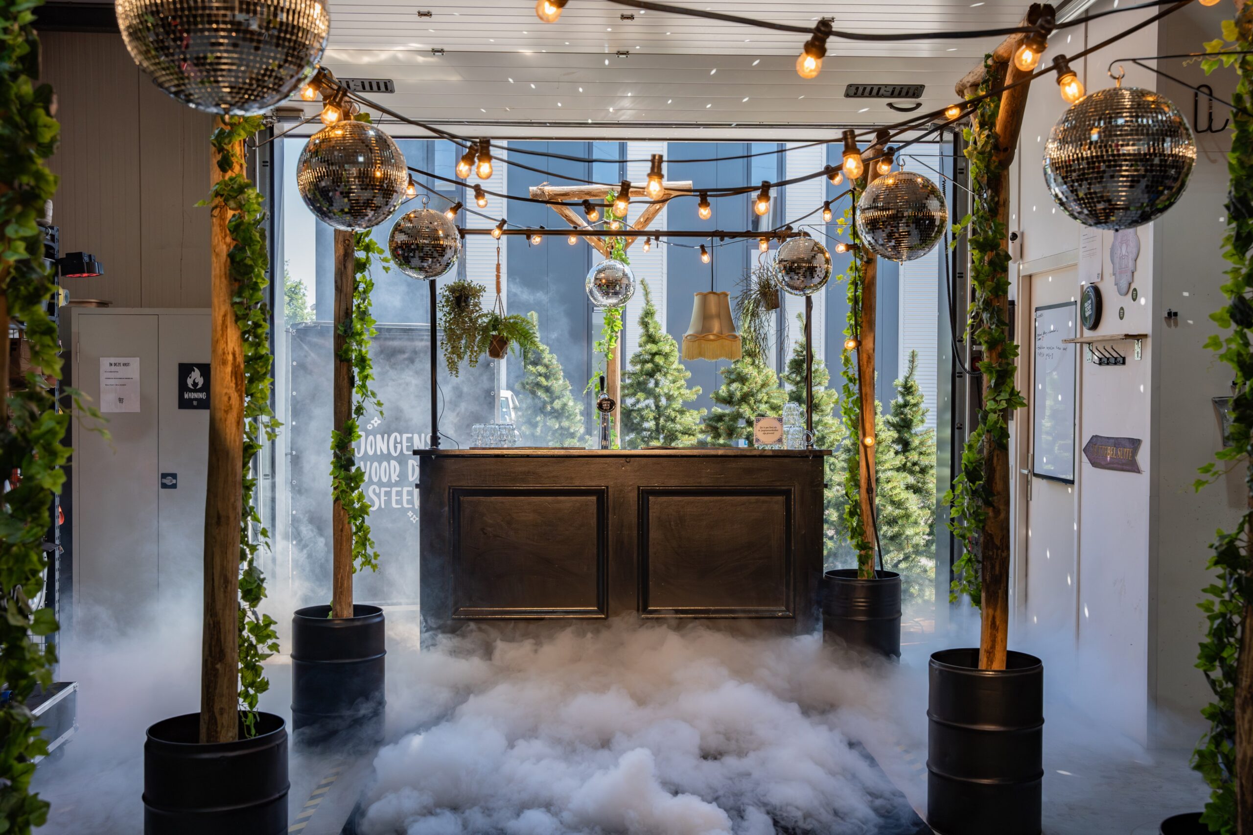 Door de robuuste stijgerbuizen boven de bar straalt het gelijk wat groots uit. Hieraan hangen plantjes, spotjes om de bar uit te lichten en heb je de mogelijkheid om hier zelf een aanvulling op te geven.